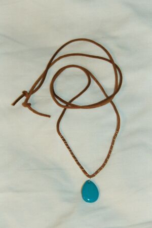 Turquoise on suede using sterling silver wire. |